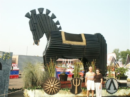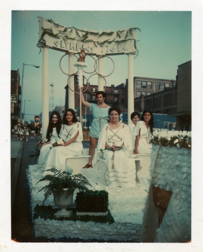 Grecian Goddesses- Mary Afentul( Mitsos) -back left, front left- send me an email if you know who, front center - Diane Thorne, front right - Let me know who, rear right - Mary Karasarides Papadopoulos and Hercules is Christ Spontyl